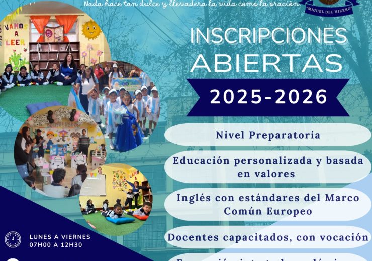 ¡¡INSCRIPCIONES ABIERTAS 2025 – 2026!! La Unidad Educativa «Miguel del Hierro»…